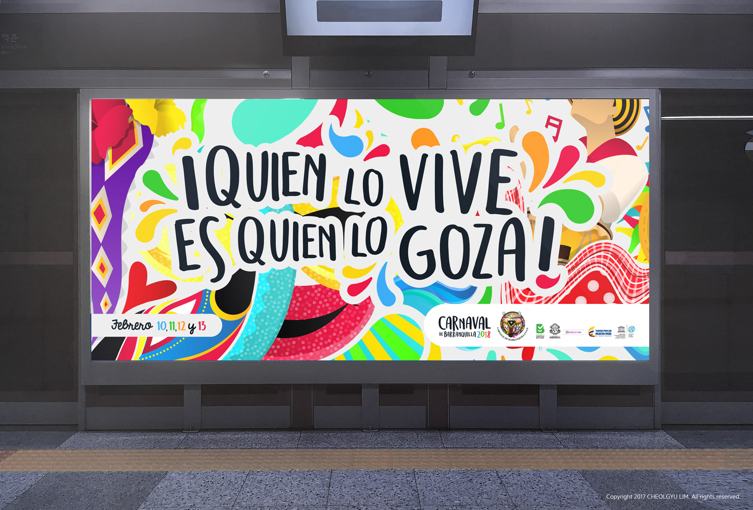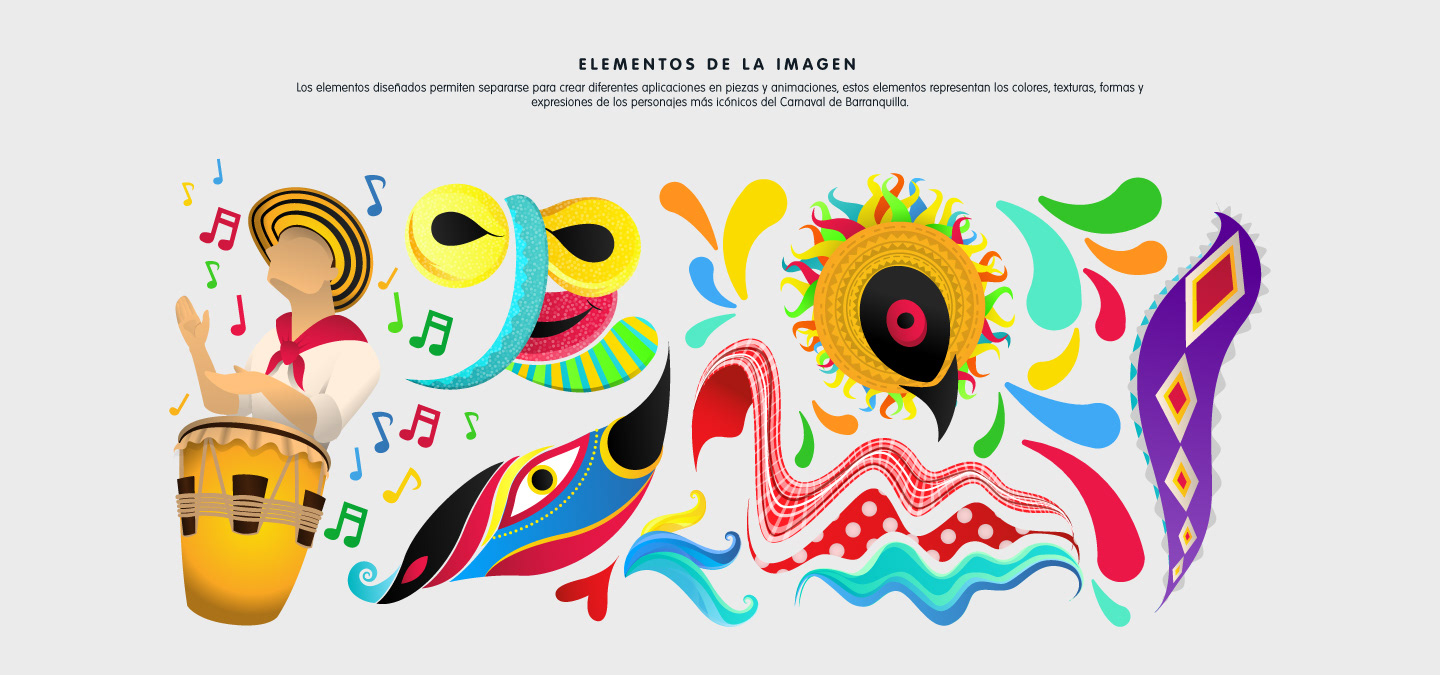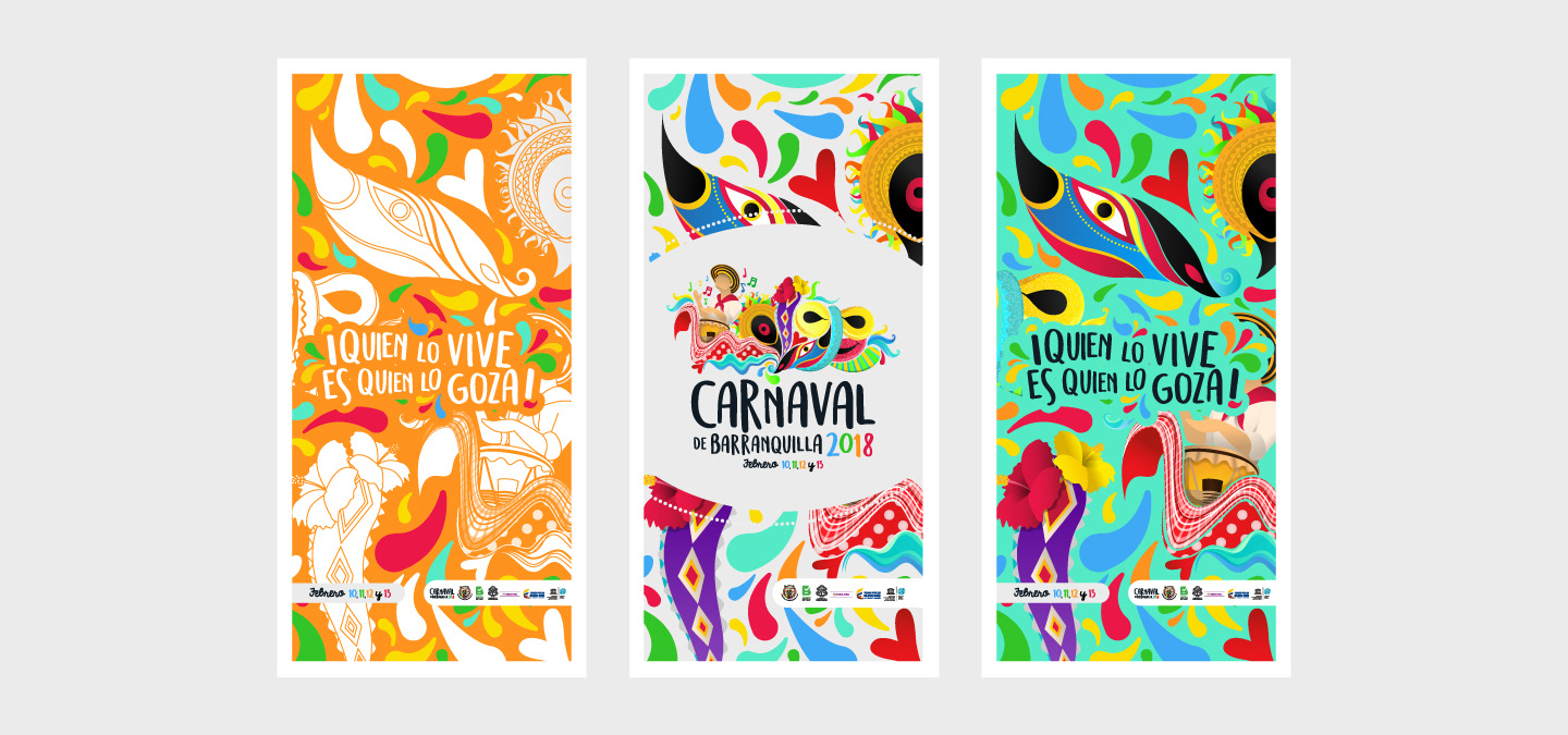 Brand design for the Carnival of Barranquilla 2018, the art was inspired in the more iconics dances, disguises, manifestations, instruments, vegetation the Caribbean sea and the Magdalena river.